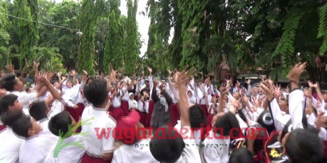 WAGATABERITA.COM – PROBOLINGGO. Cara unik dilakukan siswa sekolah dasar negeri Triwung Lor 3, di kota Probolinggo, Jawa Timur, guna memperingati hari cinta puspa dan satwa. Mereka melakukan aksi longmarch, hingga pelepasan burung secara massal, Senin (06/11/2017).