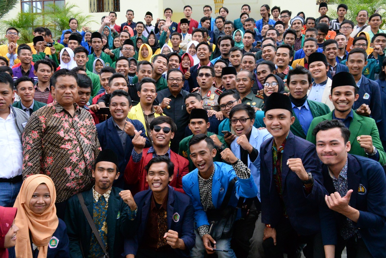“Kita bersyukur tinggal di Jatim, rasanya nyaman. Apalagi anak mudanya memiliki pikiran yang open minded terhadap berbagai hal, bisa diajak memikirkan kebijakan yang baik untuk masyarakat,” ujar Pakde Karwo sambil menjelaskan pendekatan partisipatoris sebagai cara demokrasi yang dilakukan Pemprov Jatim dalam memberikan pelayanan publik kepada masyarakat. (Aisah Lailatul Faulana)