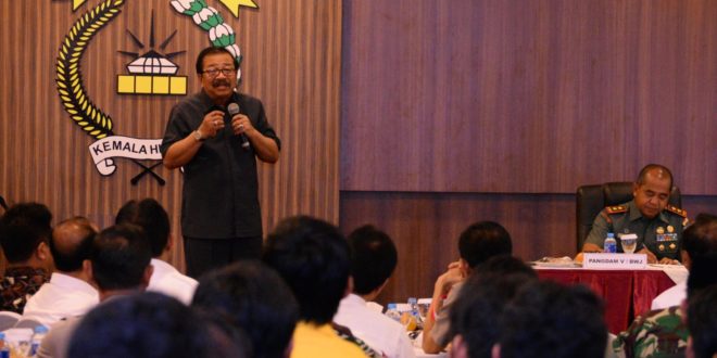 “Kalau demokrasi dipegang teguh, bukan hanya pendekatan top down dan bottom up, tetapi juga partisipatoris, yakni mengajak berbicara seluruh masyarakat. Tidak ada struktur, adanya egaliterian,” kata Gubernur Jatim Dr. H. Soekarwo saat menghadiri Cangkrukan Forkopimda bersama Presiden Badan Eksekutif Mahasiswa se – Jatim di Gedung Bhayangkari Mapolda Jatim, Rabu (21/02/2017) pagi.