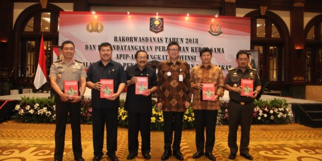 Dalam kesempatan ini Gubernur Jatim Dr. H. Soekarwo menanda tangani Perjanjian kerjasama Aparatur Pengawas Internal Pemerintah dengan Aparat Penegak Hukum (APIP – APH) Tingkat Provinsi Jatim terkait penanganan laporan atau pengaduan masyarakat yang berindikasi korupsi dalam penyelenggaraan pemerintahan daerah.