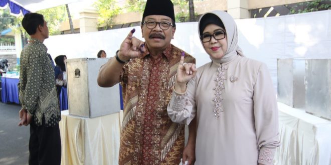 WAGATABERITA.COM – SURABAYA. Pilkada serentak hari ini Rabu (27/06/2018) dimana pemilihan Gubernur dan wakilnya tak dilewatkan oleh Gubernur Jatim Dr. H. Soekarwo bersama Istri Dra. Hj. Nina Soekarwo, MSi untuk memberikan hak suaranya atau mencoblos dalam pemilihan Gubernur dan Wakil Gubernur Provinsi Jawa Timur di TPS 22 Kelurahan Manyar Sabrangan Kecamatan Mulyorejo, Kota Surabaya, Rabu (27/06) pagi.