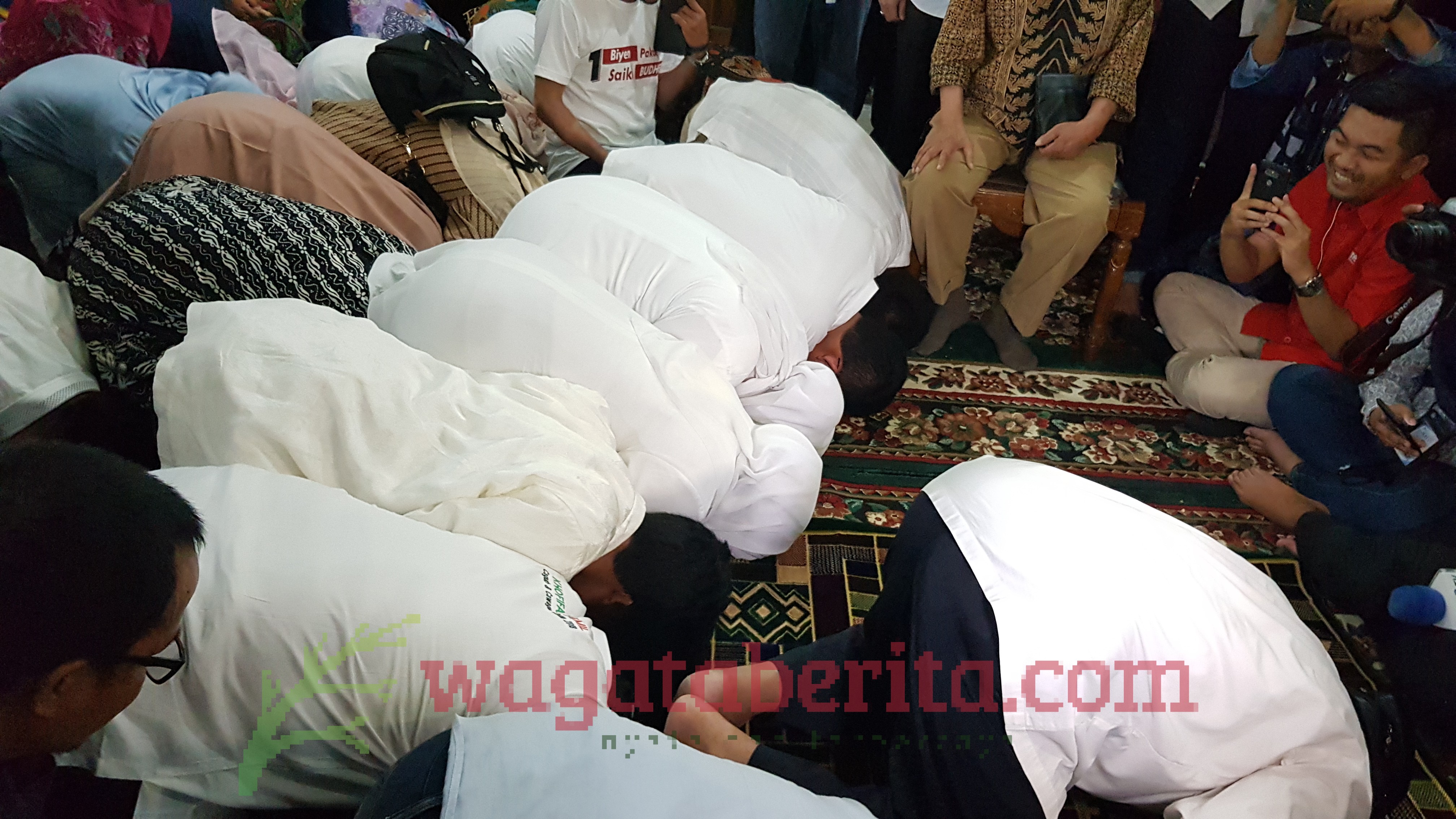 Pantauan wagataberita.com hadir juga para petinggi partai Politik pendukung dan tak ketinggalan hadir juga Gus Soleh. Sesaat hadir nya Gus Soleh Khofifah langsung melakukan sujud Syukur atas keunggulannya atas perhitungan quick count. (Juliman)