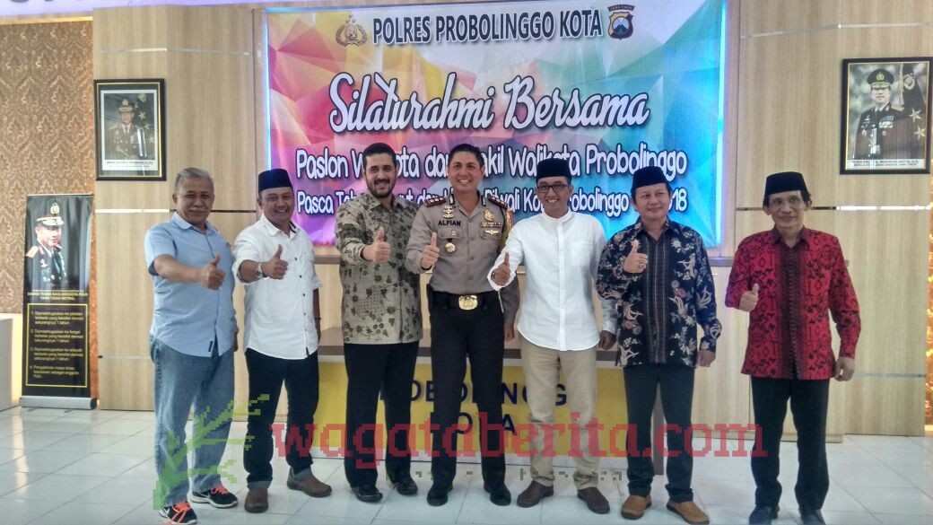 WAGATABERITA.COM – PROBOLINGGO. Pasca Pemilihan serentak Pilwali Probolinggo, Jawa Timur, para pasangan calon Walikota dan wakil Walikota Probolinggo, langsung bersilaturahmi di ruang Rupatama Sanika Satyawadya, Mapolresta setempat, Kamis (28/06/2018).