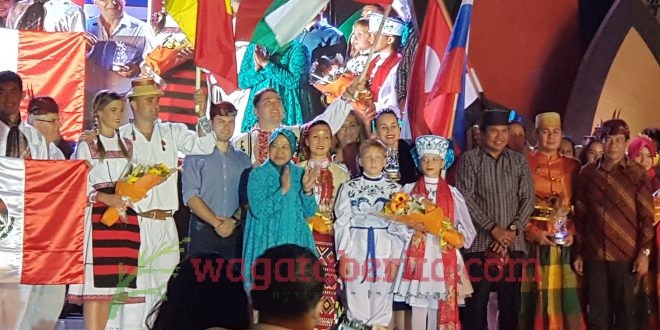 WAGATABERITA.COM – SURABAYA. Pembukaan kegiatan Cross Culture yang dilakukan di halaman Balai Kota Surabaya Senin (16/07/2018) malam yang dihadiri undangan dari berbagai negara. (Juliman)