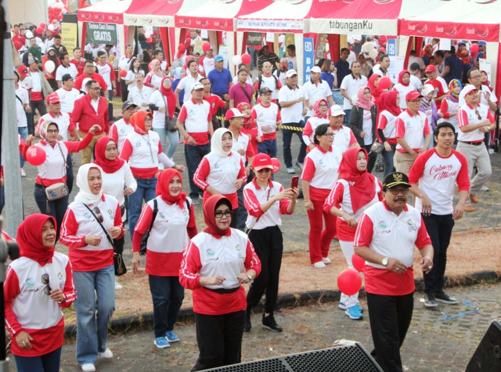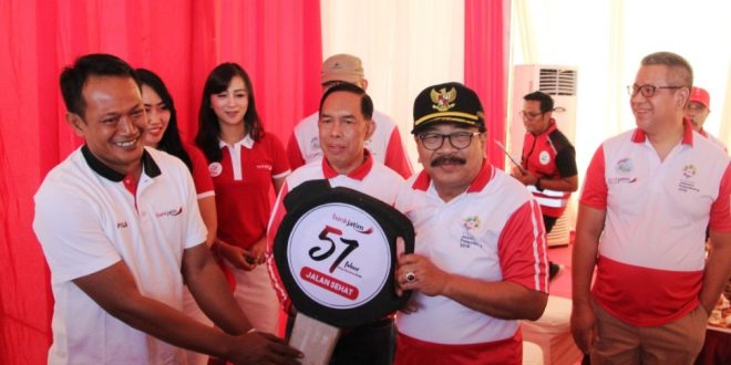 WAGATABERITA.COM – SURABAYA. Jalan Sehat dalam rangka memperingati Dirgahayu Bank Jatim memasuki usia ke 57 Tahun di Lapangan Lenmarc, Surabaya, Sabtu (18/08/2018) dihadiri Gubernur Jatim Dr. H. Soekarwo.