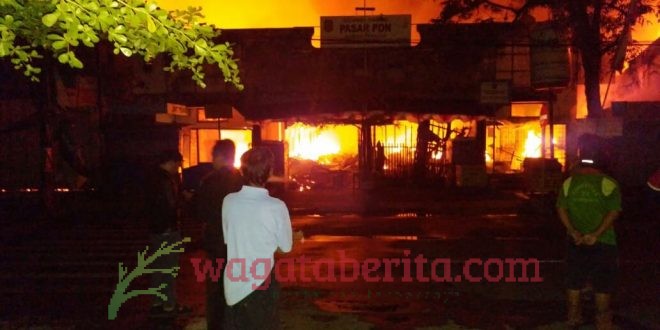 WAGATABERITA.COM – TRENGGALEK. Kebakaran Pasar Pon dini hari tadi sekira pukul 01 : 00 WIB, Sabtu (25/08/2018).