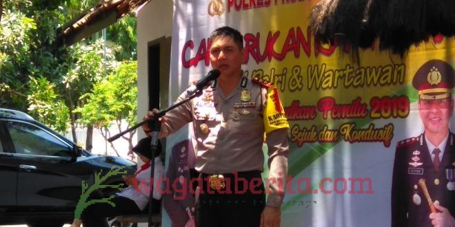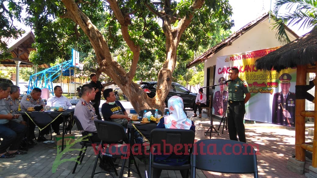 WAGATABERITA.COM – PROBOLINGGO. Kepolisian Resort Kota Probolinggo, bersama Kodim 0820 dan Media, menggelar sinergitas menghadapi gelaran Pileg dan Pilpres tahun 2019, yang dilaksanakan di halaman wisma Kapolresta Probolinggo.