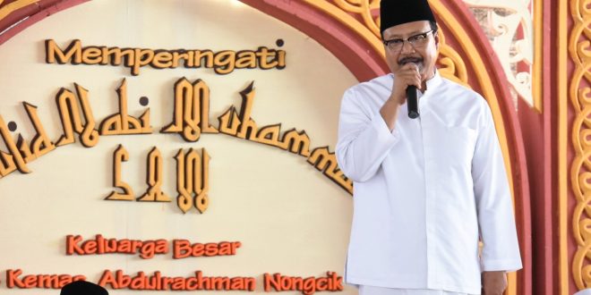 WAGATABERITA.COM – SURABAYA. Peringatan Maulid Nabi Muhammad SAW bersama keluarga besar H. Kiemas Abdulrachman di Gunung Anyar Surabaya, Minggu (18/11/2018) ikut dihadiri Wakil Gubernur Jawa Timur Drs. H. Saifullah Yusuf.