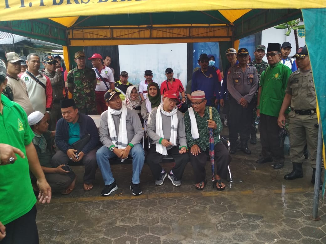 Cuaca yang kurang bersahabat tak mengurangi semangat penuh kegembiraan masyarakat dan tokoh ulama serta siswa sekolah menyambut kedatangan rombongan terutama dalam peragaan permainan drumband.