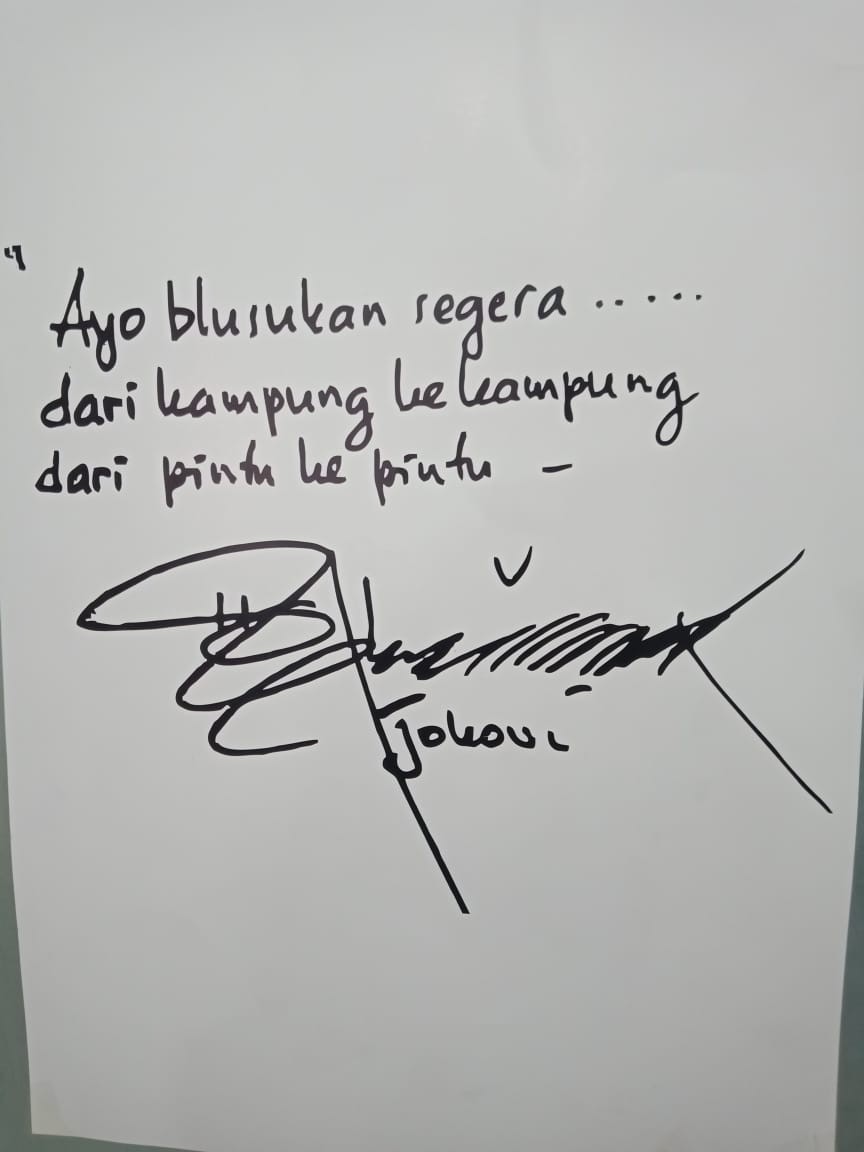 WAGATABERITA.COM – SURABAYA. “Ayo blusukan segera, dari kampung ke kampung dari pintu ke pintu” itu yang disampaikan Presiden Jokowi kepada seluruh pendukung nya melalui sebuah surat bertulis tangan yang bertanda tangan Presiden Jokowi.