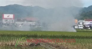 WAGATABERITA.COM – TRENGGALEK. Kepulan asap hasil pembakaran jerami menghujani kawasan RSUD dr Soedomo Kabupaten Trenggalek. Akhirnya pasien yang