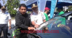 WAGATABERITA.COM – SURABAYA. Pemerintah Kota (Pemkot) Surabaya melakukan uji emisi buang kendaraan simpatik di Halaman Taman Surya pada Selasa (23/05/2017).
