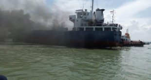 WAGATABERITA.COM – SURABAYA. Kapal Cargo Asia Prima 1 terbakar di perairan Terminal Peti Kemas (TPS) Pelabuhan Tanjung Perak,
