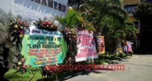 WAGATABERITA.COM – SURABAYA. Dalam tiga hari ini pihak markas polda Jawa Timur di Jalan A Yani No 116 Surabaya kebanjiran ucapan berupa karangan bunga.