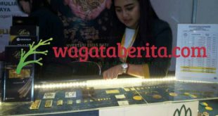WAGATABERITA.COM – SURABAYA. PT Aneka Tambang (Antam) memamekan emas batangan pada pemeran pariwisata The 18 th Majapahit Travel Fair Grand City Surabaya, Kamis (13/04/2017).
