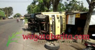WAGATABERITA.COM – SIDOARJO. Kecelakaan tunggal terjadi di ruas jalan raya Krian – Waru. Sebuah truk boks terguling di kilometer 23, Desa