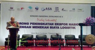 WAGATABERITA.COM – SURABAYA. Ketua Gabungan Pengusaha Ekspor Indonesia dan Ketua Umum Dewan Pemakai Jasa Angkutan Laut